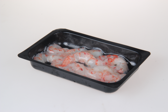 实现效果:通过真空贴体技术,虾仁、蟹肉等小型水产类产品的保鲜期延长2–3倍,减少了因包装松动导致的形态损坏。产品在零售展示时保持鲜亮色泽和完整外形,经过冷链运输后依旧保持较高的鲜度和口感,提升了品牌形象,增加了销量。